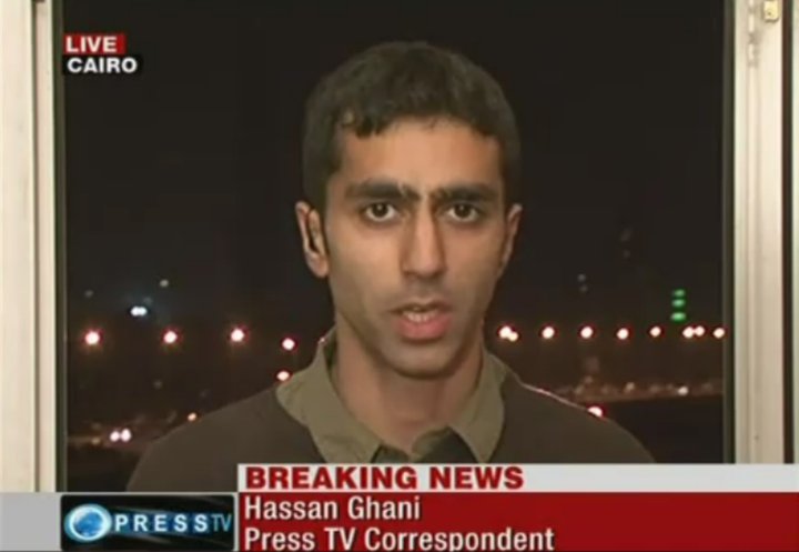 Hassan Ghani reporting for Press TV from Tahrir Square in Cairo, November 2011